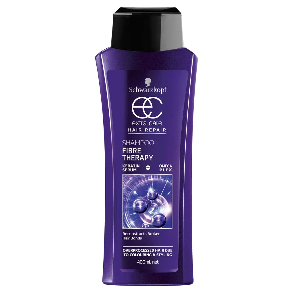 Schwarzkopf Extra Care fibre Therapy bond restore shampoo with Omegaplex for fibre bond reconstruction and long-lasting protection against future damage for overprocessed hair due to colouring or styling.