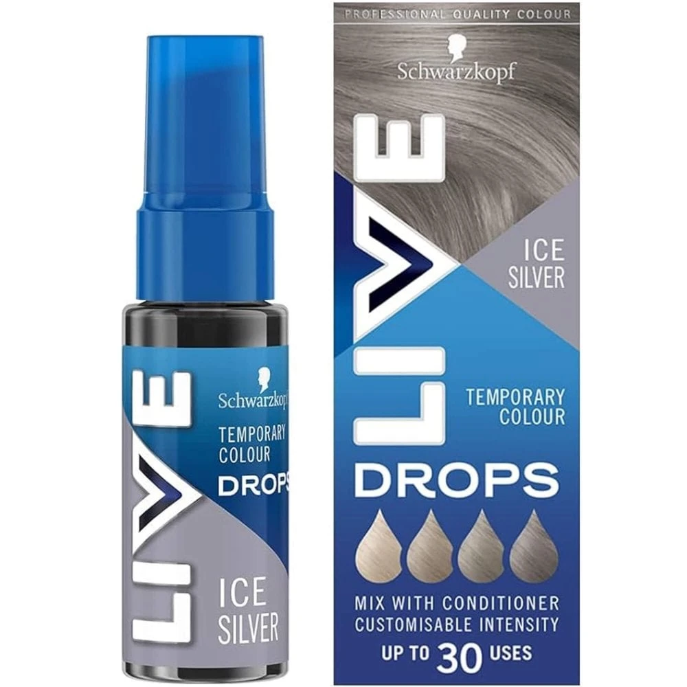 LIVE Colour Drops are a range of temporary customisable colours suitable for bleach blonde to dark blonde hair. The formula is highly pigmented and can be used to tone your blonde or create a temporary silver hue. Simply mix with conditioner for a customisable intensity.