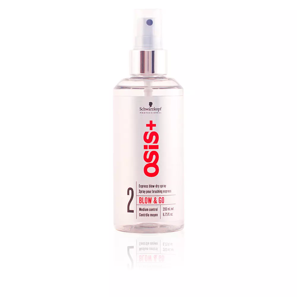Schwarzkopf styling products. OSIS BLOW & GO express blow-dry spray. It is a medium control spray that provides softness, helps styling because it is faster and easier, anti-frizz, it shines and protects from heat. Spray on wet hair, blow-dry, and style as desired.